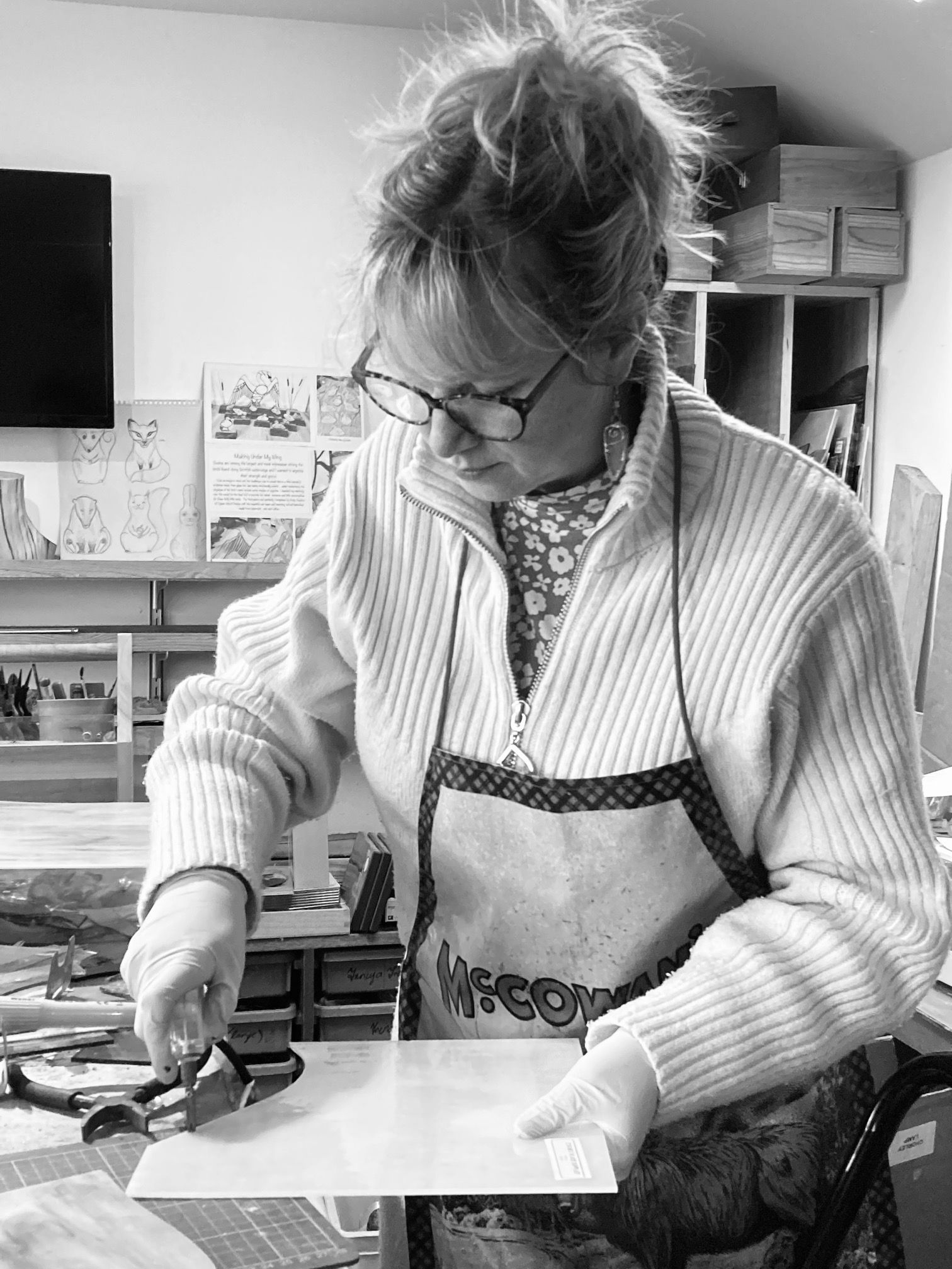 Managing the gallery impacts Angela's ability to work on her own Harris Tweed art. At least having the workshop in the back of the gallery allows all the team to turn their hand to something creative when the mood strikes. It's also where Angela runs her framing business from.