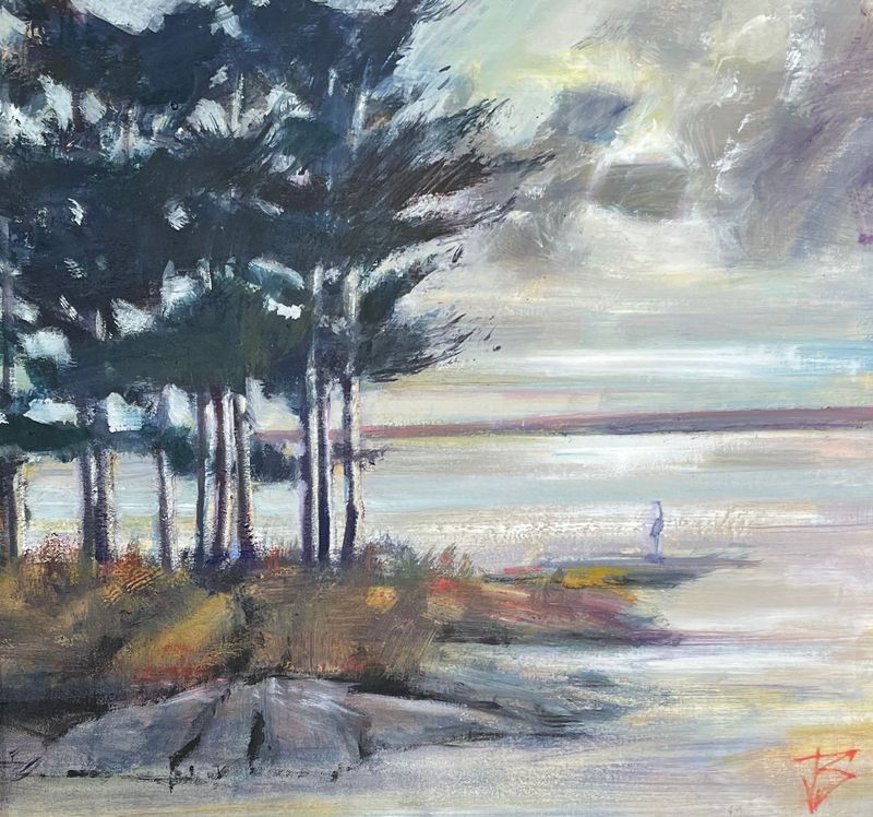 Angela, Artisanand's owner says "Cowal Peninsula based artist John Robert Smith joined the gallery before Covid and has been a regular contributor since then. John’s work is marvellous always speaking of a narrative with strong emotive themes. I’ve been lucky to have him in the gallery with collections that have addressed narratives that impact us all in some way; They include his "Lockdown" paintings with musicians playing - socially distanced - on the loch in moonlight, the "Hugs" collection which captured how it felt when we could again hold each other after the first covid release and his "From river to sea" collection, telling the story of his previous home near the Tay and his new home on the Cowal Peninsula.